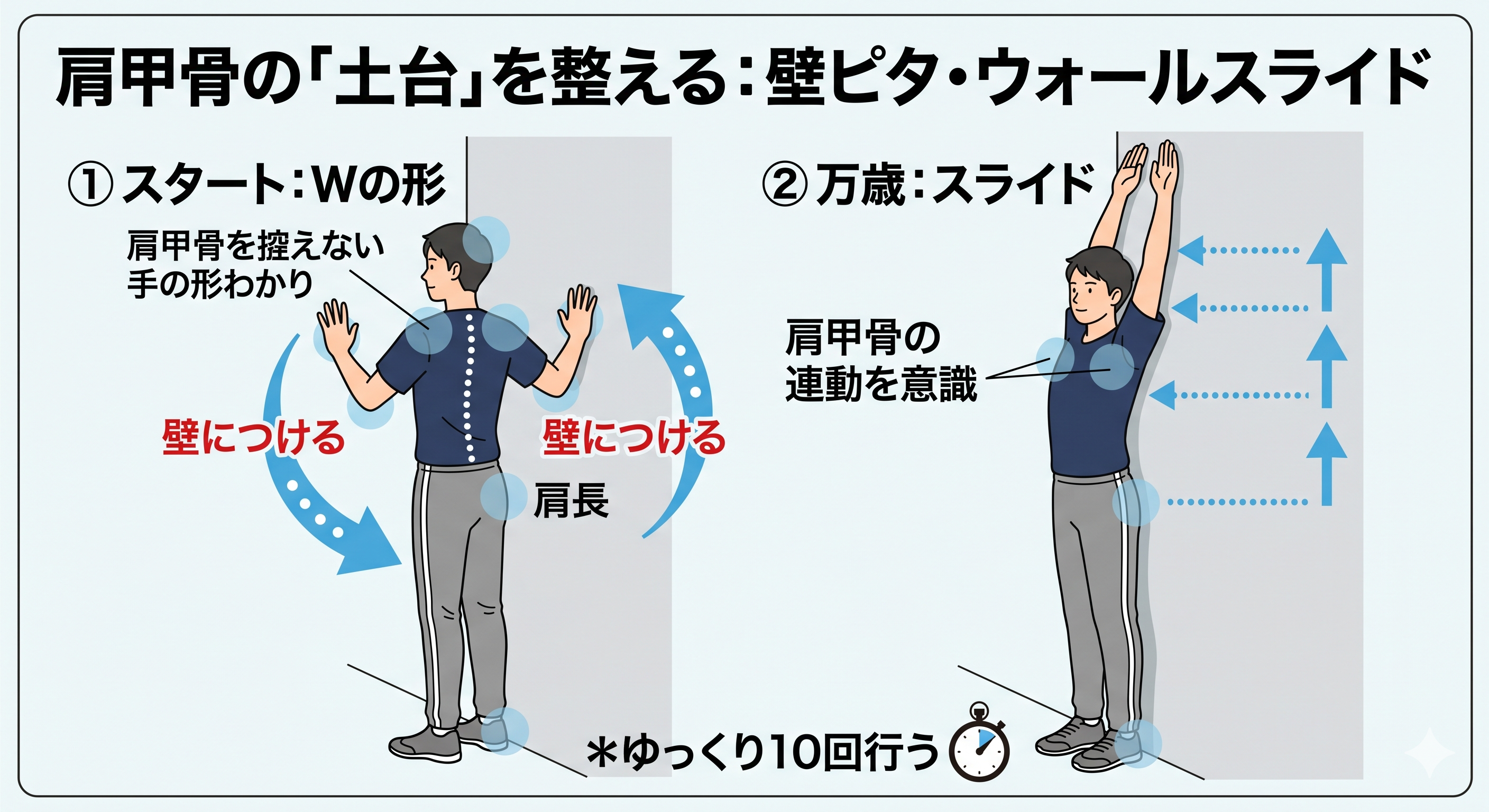 肩甲骨の「土台」を整える:壁ピタ・ウォールスライド